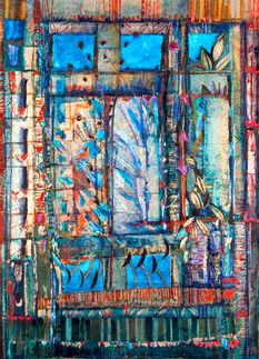 Collage sur toile, acrylique, pastels, techniques mixtes
